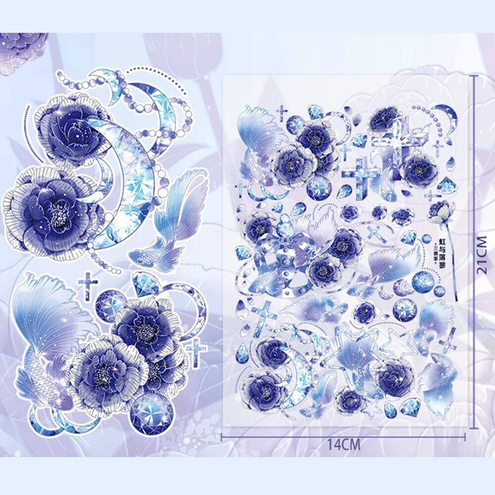 ブランド フレークステッカー シール コラージュ 素材 ペーパー 素材紙 レトロ かわいい 花、レモン、イチゴ、果物 PET 耐水性 韓国 シール帳 ,メモ用紙ノート素材、日記装飾用品 30 シート (hua3)