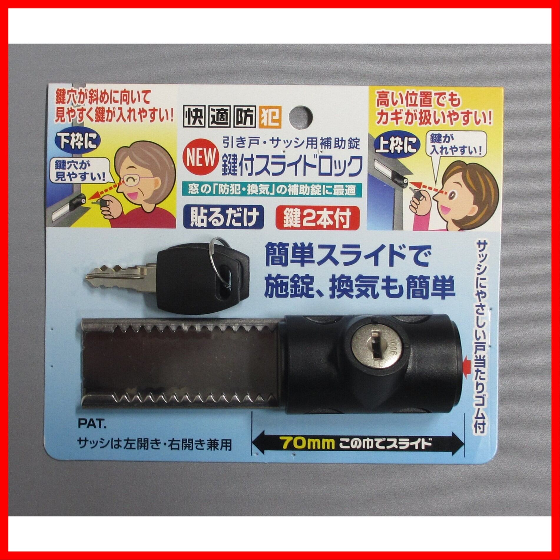サッシ枠に貼り付けるだけで、防犯補助錠として、また少し開けての換気ロックとして使えるスライドロック。 換気スペースは0~70mmの範囲で好きな幅に決められ、小さなペットも通れる(最大幅70mm。サイズを十分お確かめの上ご使用ください)。 鍵穴が斜めなので、サッシ枠の上部でも下部でも鍵穴の確認や抜き差しがしやすい。お子様からご年配の方まで簡単に使える機能性に優れたロック。 戸当りゴム付きでサッシにやさしい設計。