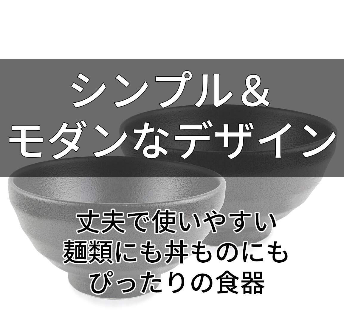 【日本製】Bom Dia 美濃焼 どんぶり 口径16cm×高さ8.5cm 食器2点セット (ブラック)