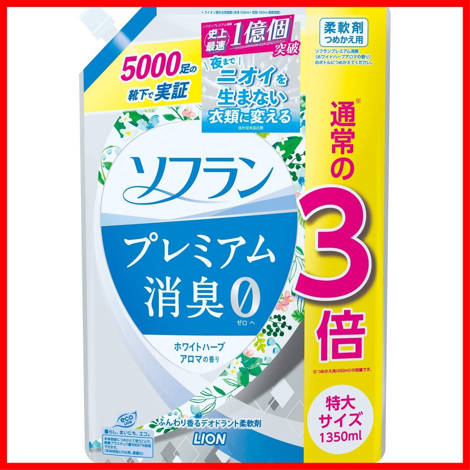 【大容量】ソフラン プレミアム消臭 ホワイトハーブアロマの香り 柔軟剤 詰め替え 特大1350ml