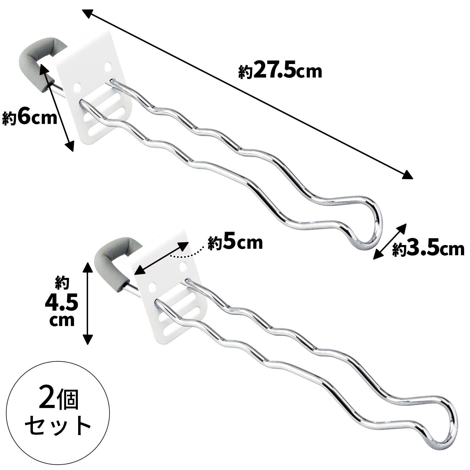 サイズ:約縦27×横5×高さ6cm、セット内容:本体2個、止め具2個