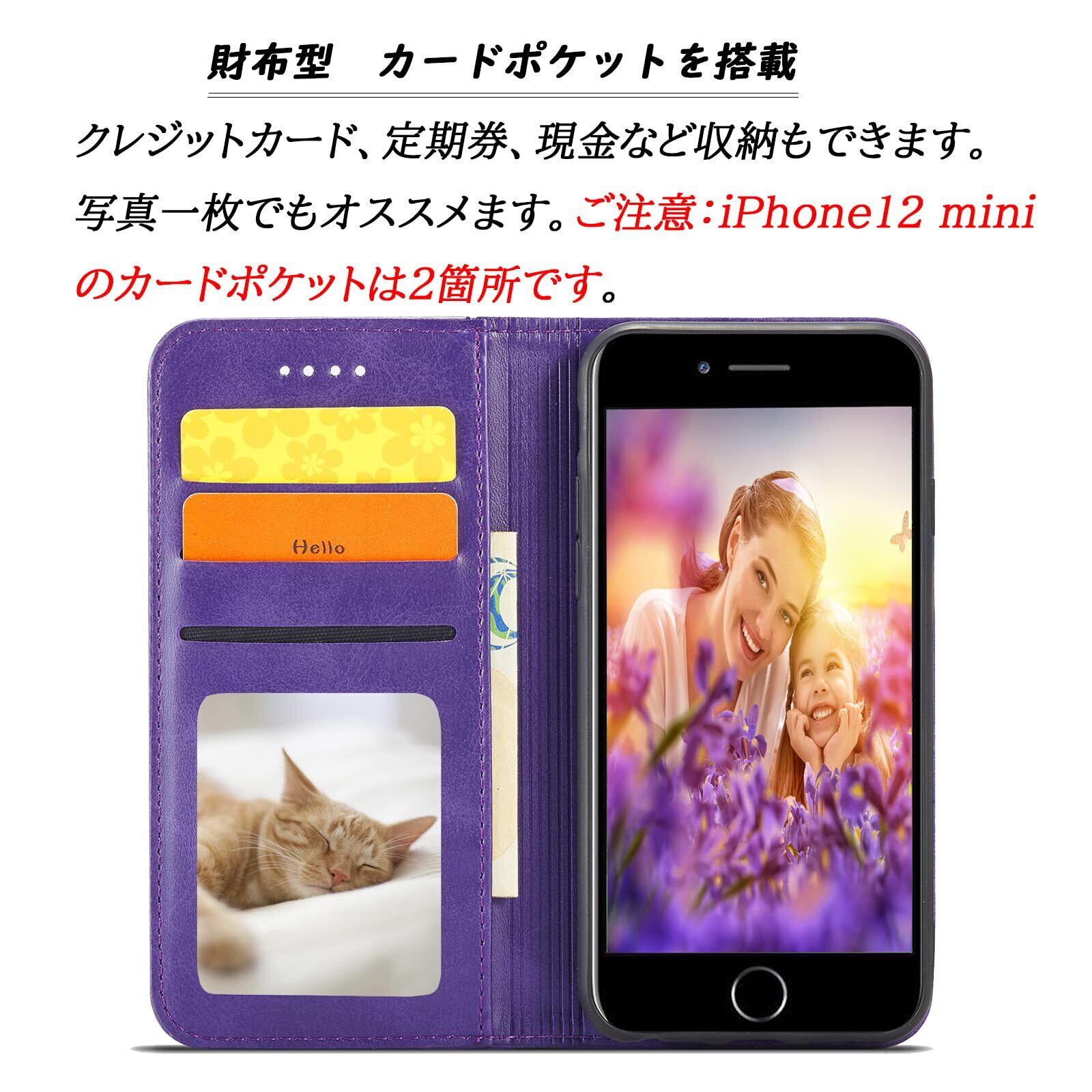 iPhone12 mini 手帳型 iPhone 12 mini 手帳 カバー iPhone12 mini 手帳ケース 携帯ケース iPhone12mini case スマホケース 保護ケース 携帯カバー あいふぉん12手帳型ケース アイフォン12 ミニ ケース 手帳型 PUレザー ストラップホール付き カード収納 内蔵マグネット式 スタンド機能 薄型 防水 ノート型 耐衝撃 男女兼用 落ち着いた色 (iPhone 12 mini 5.4 inch対応) パープル