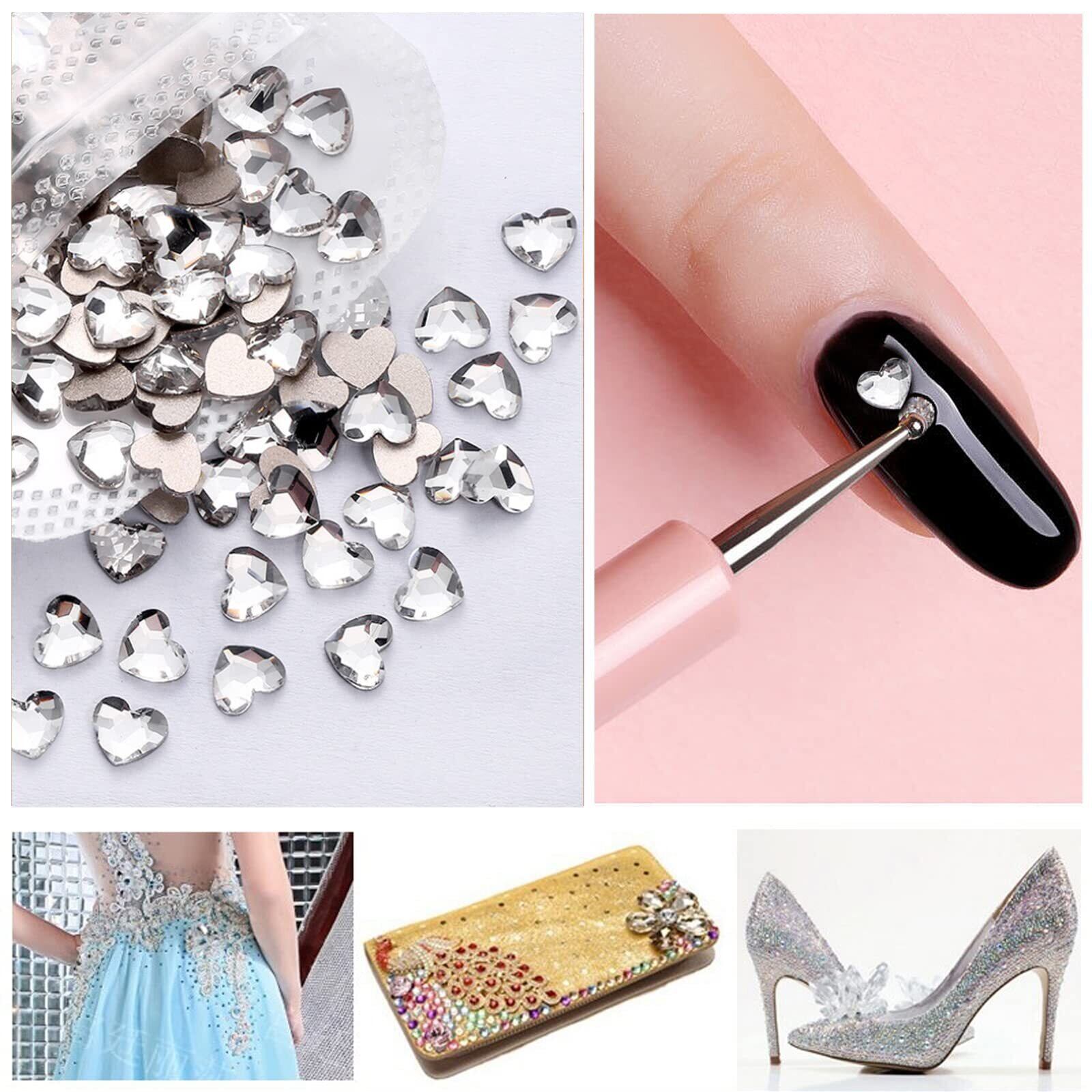 ネイルパーツ ハート 約100個入り 3mm 6mm ハート ネイル ストーン 3D 立体 ぷっくり ハートストーン キラキラ ガラス ラインストーン ネイルアート デコパーツ レジン ジュエリーパーツ (クリア)