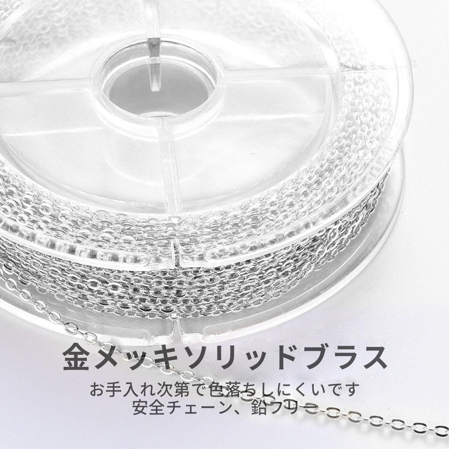 チェーン アクセサリー用チェーン 長さ約5メートル 幅1.5mm ジュエリーチェーン 小豆タイプ リングチェーン ジュエリー用 クラフト手作り用品 DIY用 ハンドメイド アクセサリーパーツ 基礎パーツ ロブスター・クラスプ10個とジャンプ・リング30個付き