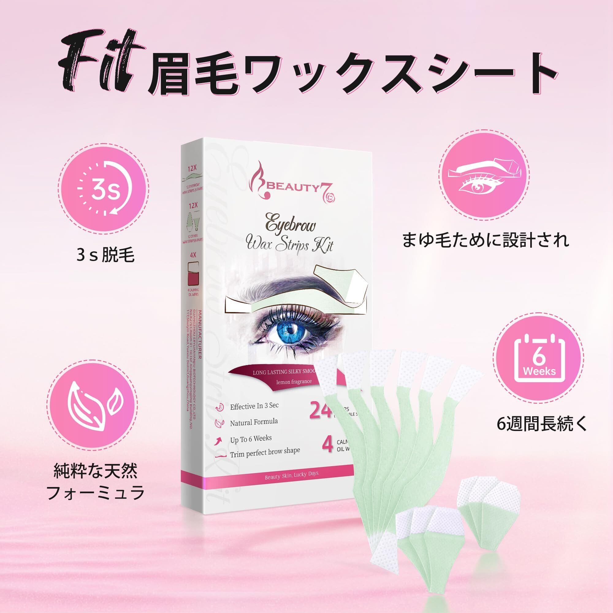 Beauty7 眉毛脱毛シート 12組 24枚 入り まゆ毛用 顔 眉毛 だつもう 口元脱毛ワックスシート 脱毛テープ 敏感肌 除毛 レディース メンズ 兼用(24枚)