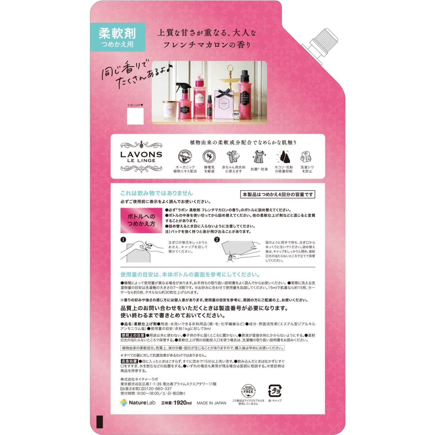 ラボン 柔軟剤 特大 フレンチマカロン [フルーティフローラル] 詰め替え 4倍サイズ 1920ml