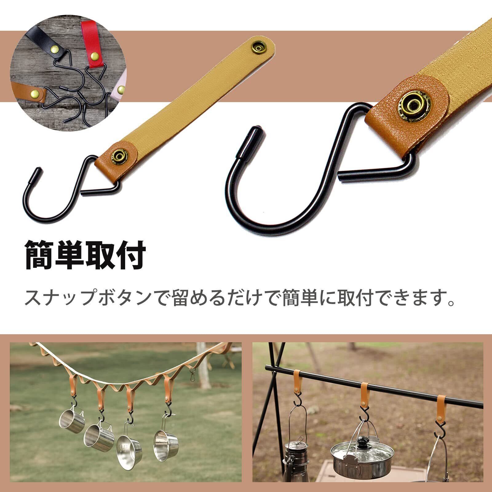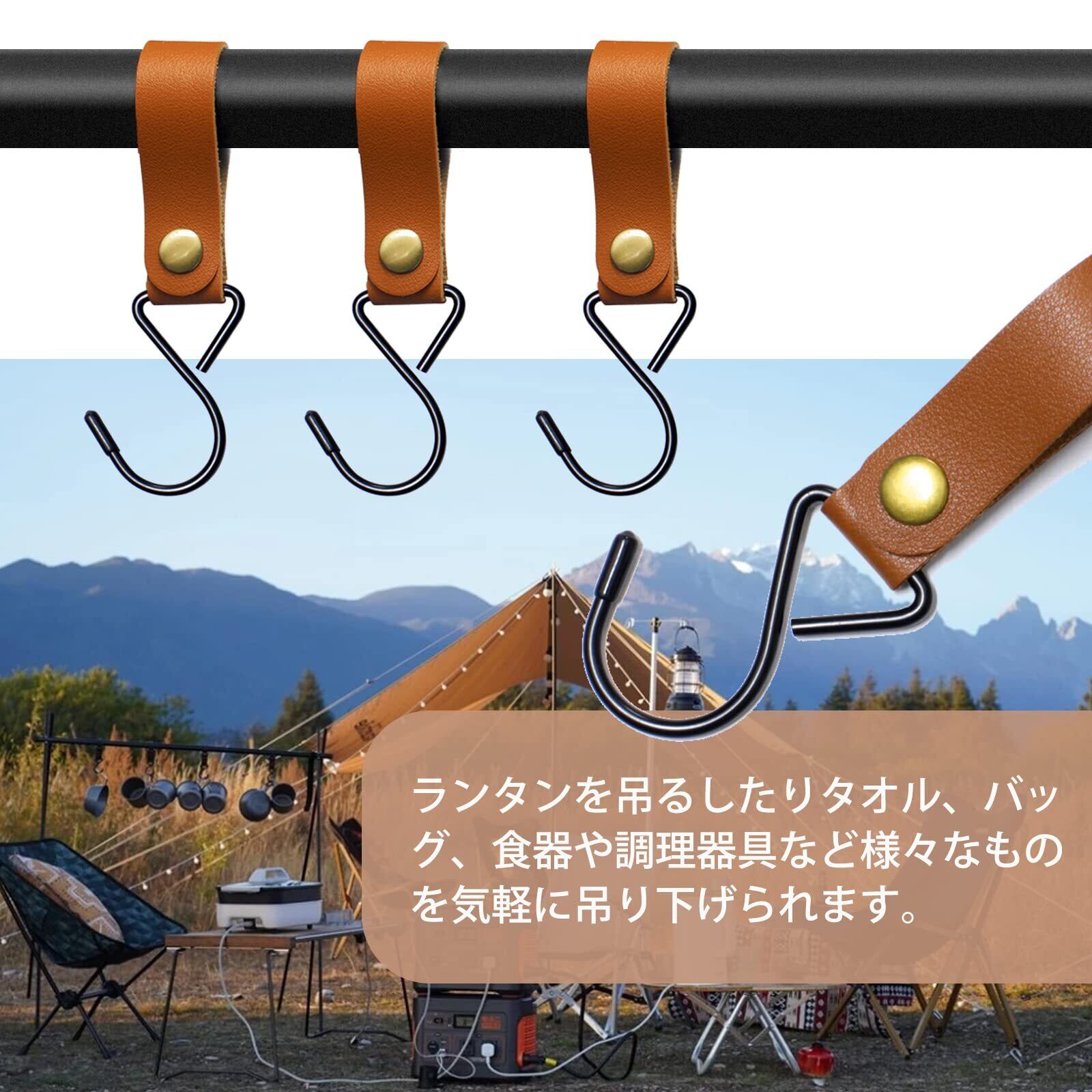 D.SigiYa ランタンフック 金属 PUレザー フック キャンプ アウトドア ハンガー 吊り下げ S字フック ライト 調理器具 キッチン 野外 収納 整理 テントポールフック ランタンハンガー 多機能 ランタンスタンド 組み立て簡単 ハンギングラック