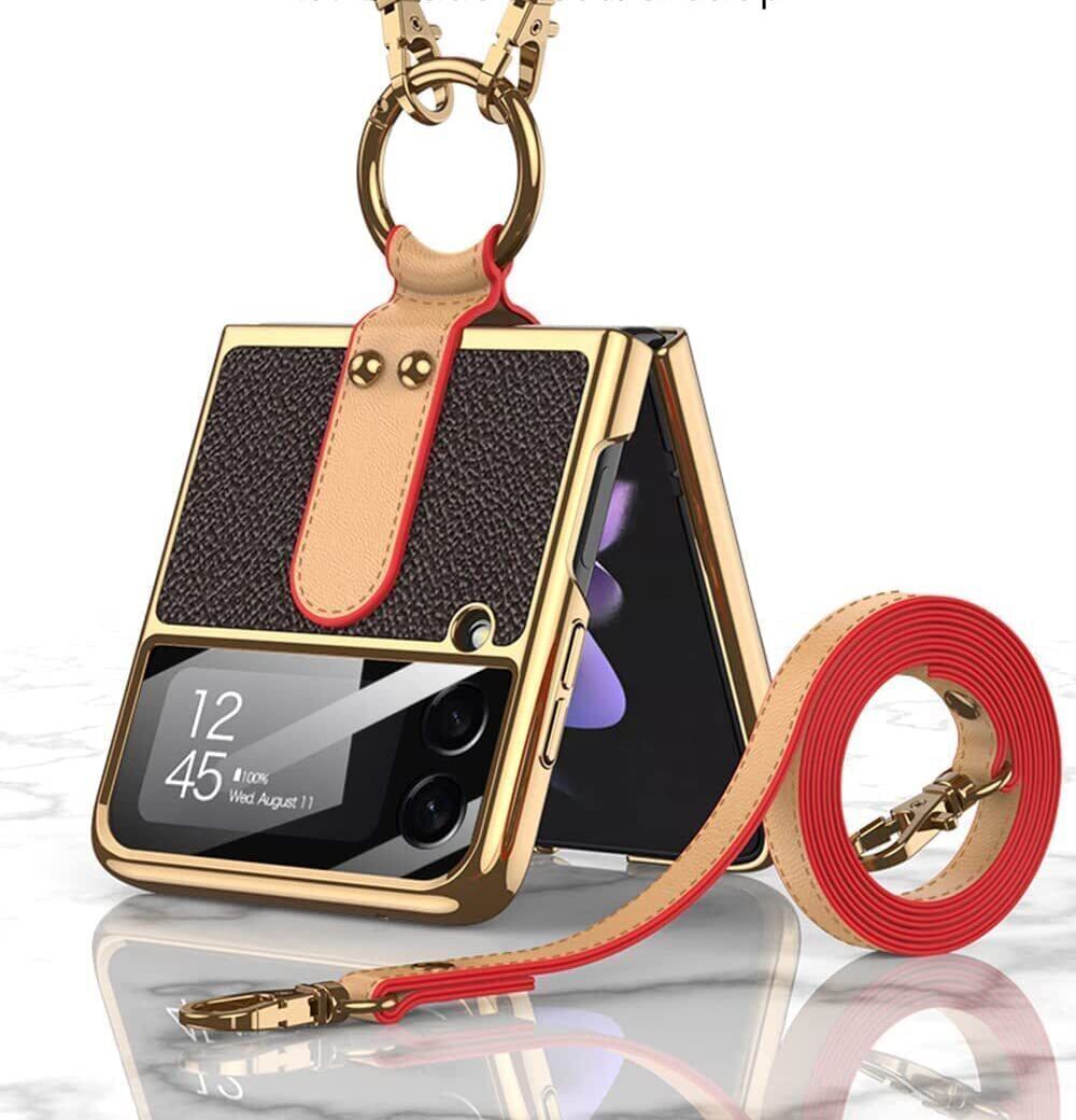 ストラップ付き Galaxy Z Flip4 5G ケース リング付き Samsung ギャラクシー Z Flip 4 用 カバー 純正 折りたたみ レンズ保護 ワイヤレス充電 耐衝撃ケース 軽量 薄型 人気 おしゃれ かわいい 男女兼用 (Galaxy Z Flip4 パープル(ストラップ付き))