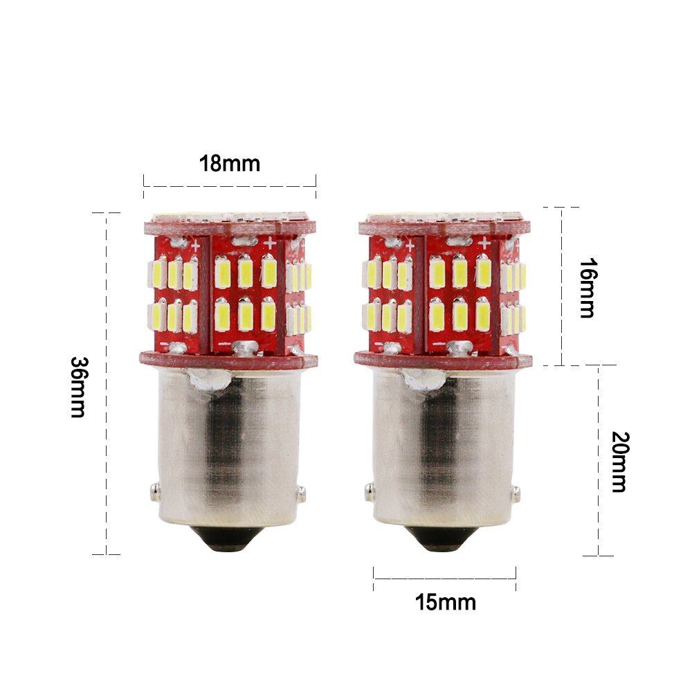 ソケット: S25 BA15S/P21W 1156 兼用 シングル球, LEDチップ:54連 3014SMD,電圧:DC12V~24V,発光色:ホワイト6000K,セット数:10個,パッケージ:帯電防止袋。