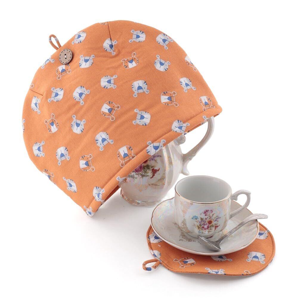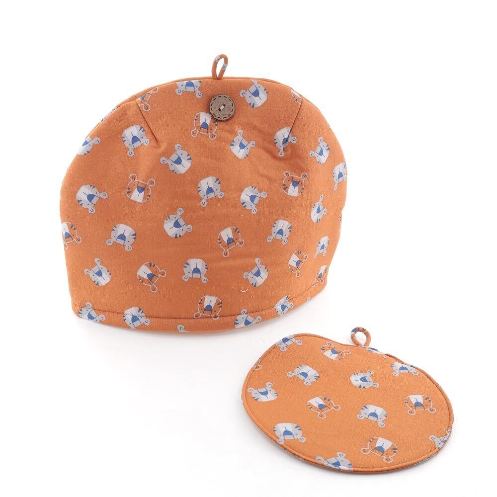 おしゃれ 北欧風 ティーコジー オレンジ ベビータイガー ティーポットカバー 匠の技 河島幸子・彰子共作 日本製 綿100%