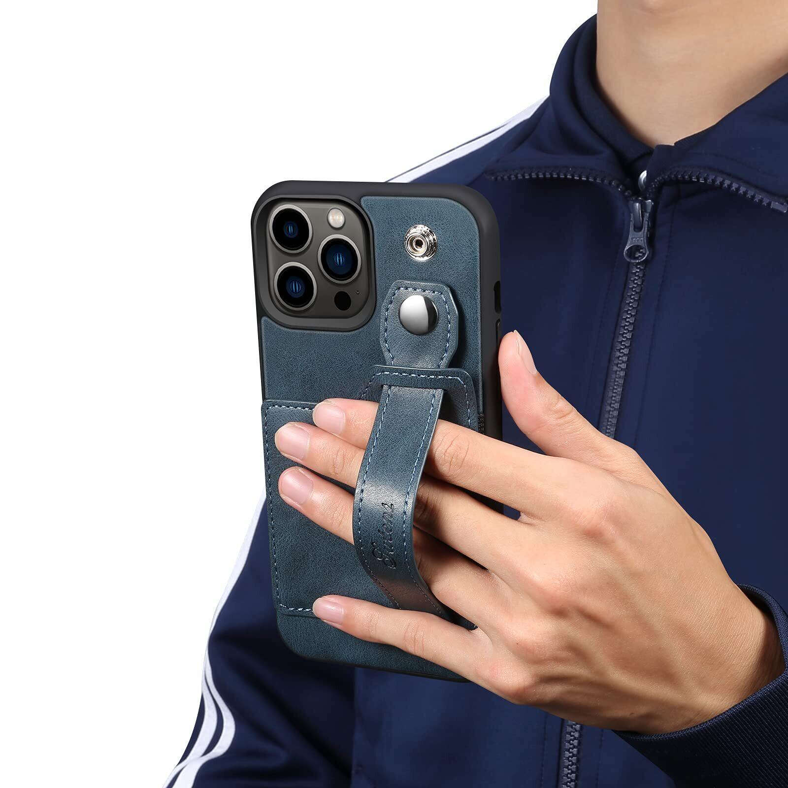 Aikutaysa iPhone 14 Pro Max 用 ケース グリップケース カバー バンド アイフォン 14 プロ マックス ケース カバー 高級PUレザー 3-5枚カード 小銭収納 バンドル グリップ フック ベルト ホルダー 落下防止 伸縮 挟み込み ハンド グリップ ストラップ スタンド機能 スマホベルト付き リング ベルト付き