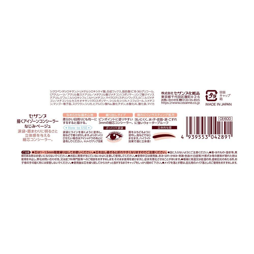セザンヌ 描くアイゾーンコンシーラー なじみベージュ 0.25g 細芯 涙袋 眉