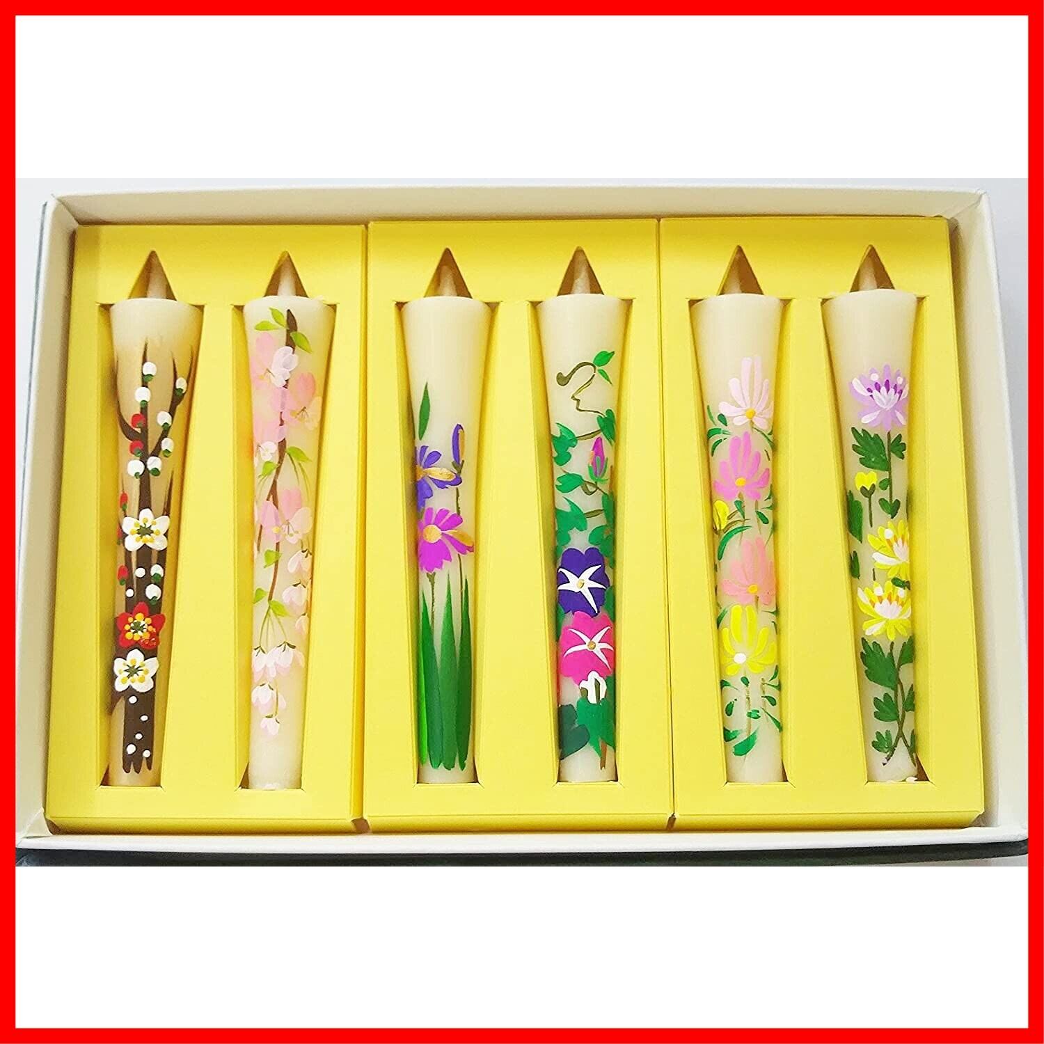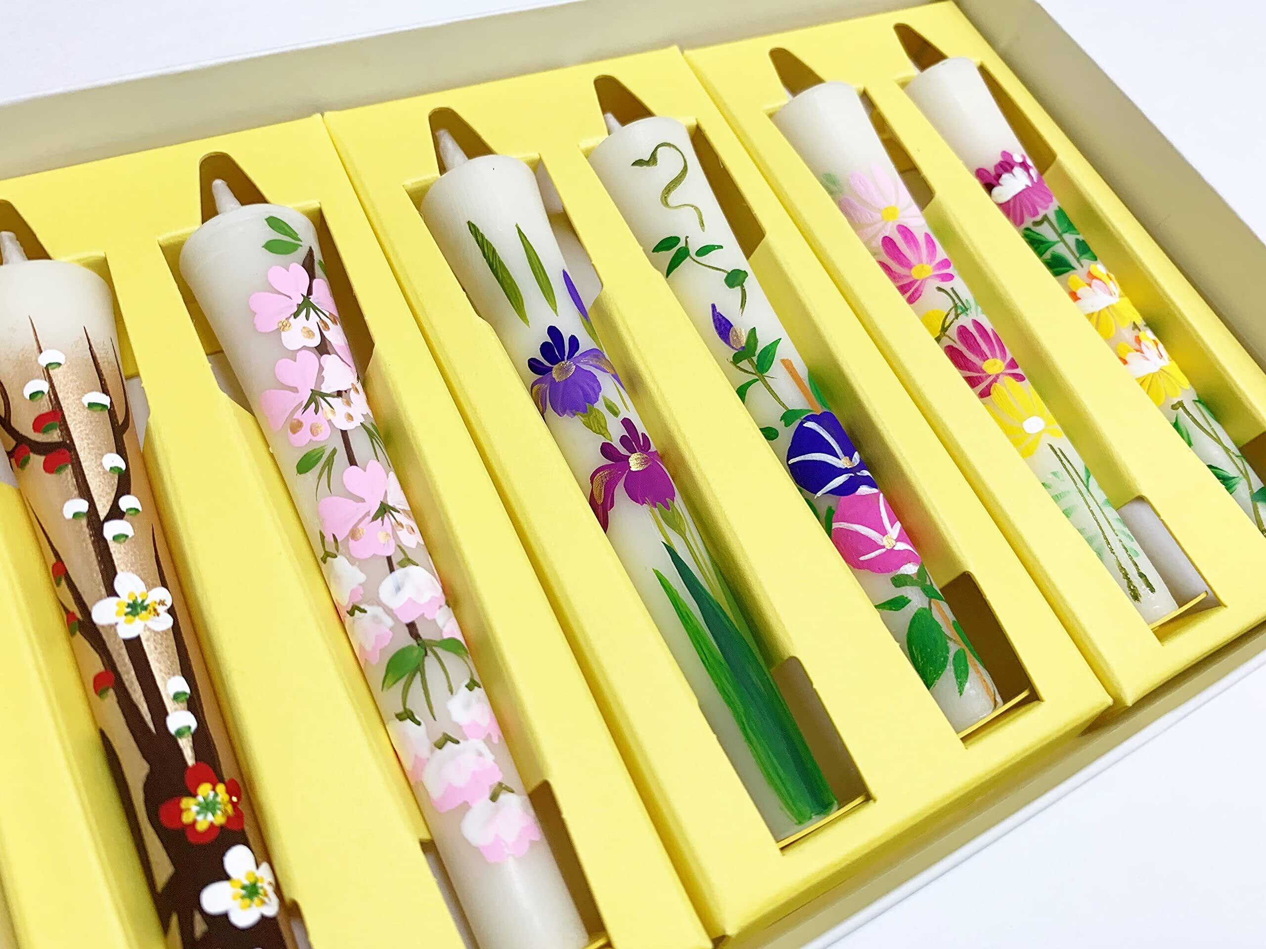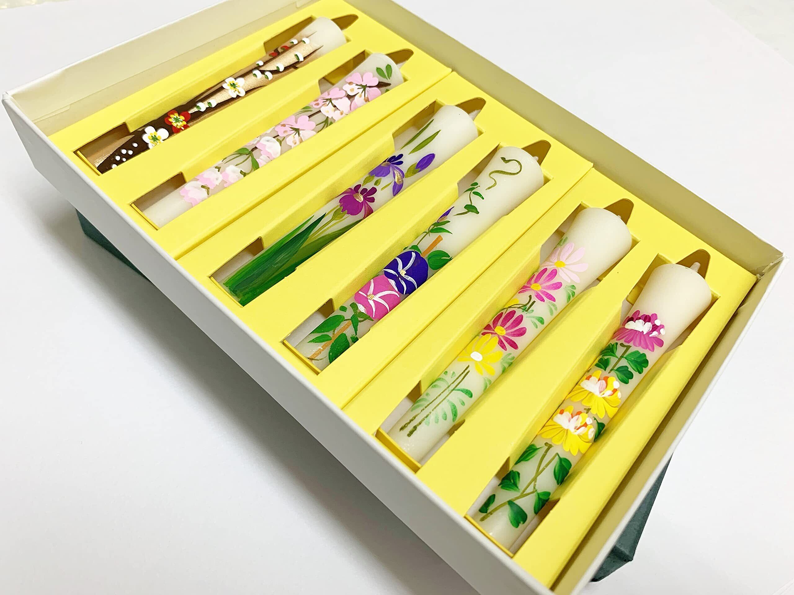 (御供 のし付き 包装品)絵ろうそく 花ろうそく 3号 6本 入り 手描き ( 手書き ) 花蝋燭セット 和ろうそく 絵ろーそく 春夏秋冬 キャンドル 法事 仏壇神棚 贈答用 お供え物 ギフト 贈り物 手土産 お土産 #3063