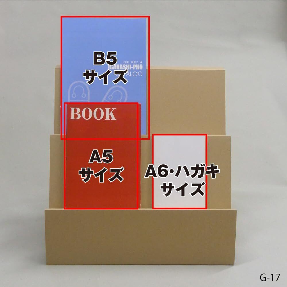 ポストカードサイズ・A5サイズ本・B5サイズ本の陳列にぴったりな、ダンボール製ひな壇面陳台です。「もっと奥行きが欲しい」というご要望に応え、1段の奥行きを70mmにした[奥行き広め]タイプが登場しました!