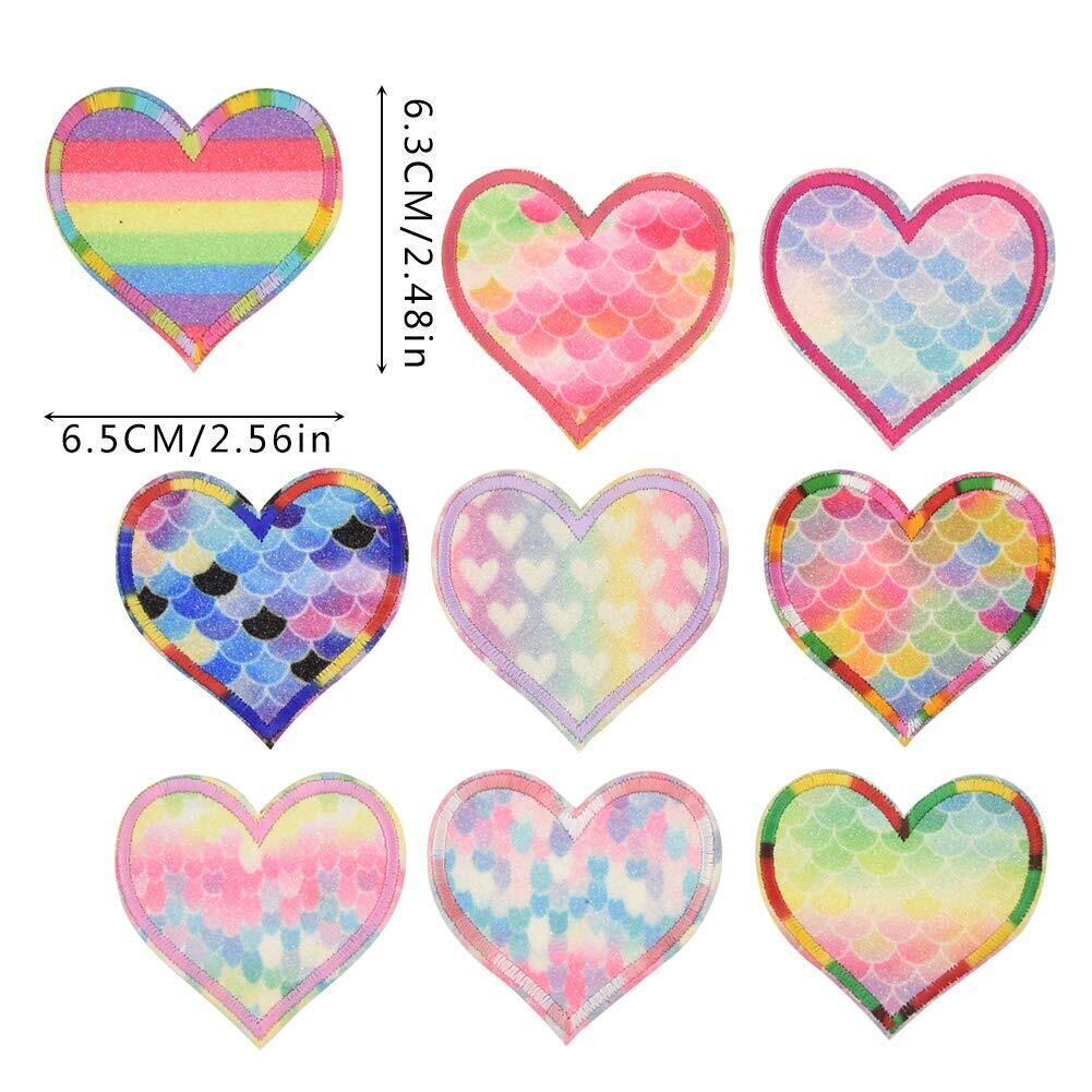 ワッペン アイロン刺繍 アップリケ DIY服 グラデーション 人魚のうろこ 美しい ハート型 モチーフ カワイイ 装飾 男の子 女の子 保育園 幼稚園 パッチ 補修 9枚セット 衣類 浴衣 手袋 手帳 飾り