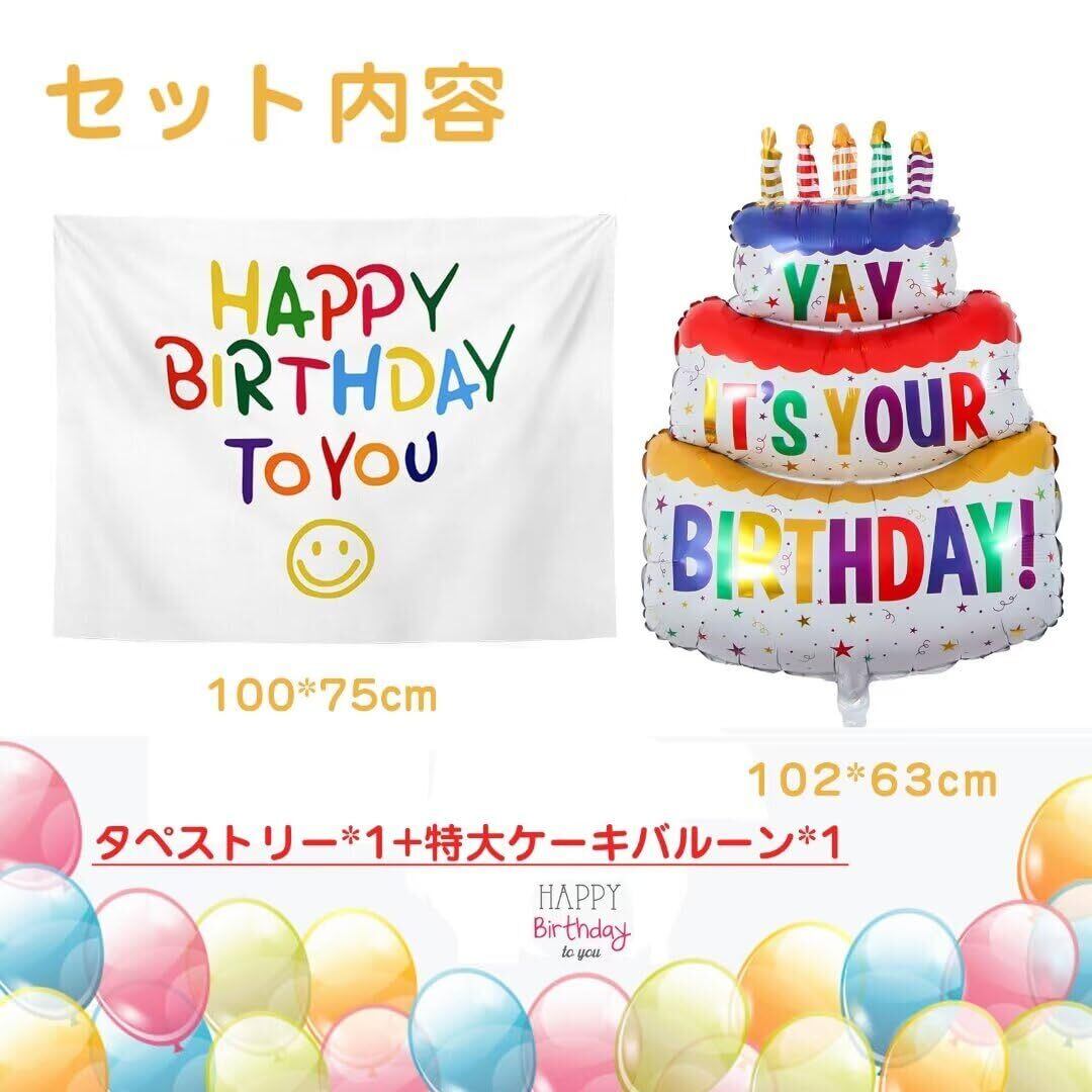 タペストリー 特大ケーキバルーン HAPPY BIRTHDAY 飾り付け 男の子 女の子 おしゃれ カラフル 可愛い プレゼント 飾り付け パーティー 写真背景 インストールツール付き