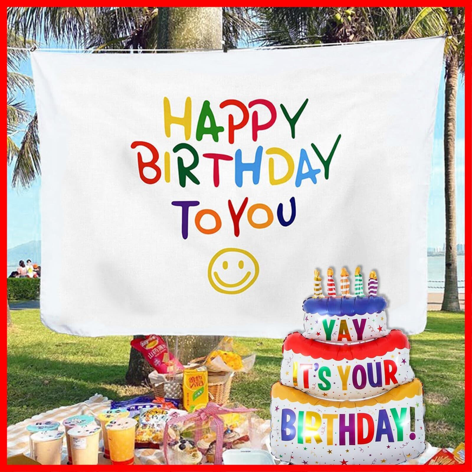 【サイズ】:タペストリー(約100*75cm)、ケーキバルーン(約102*63cm)