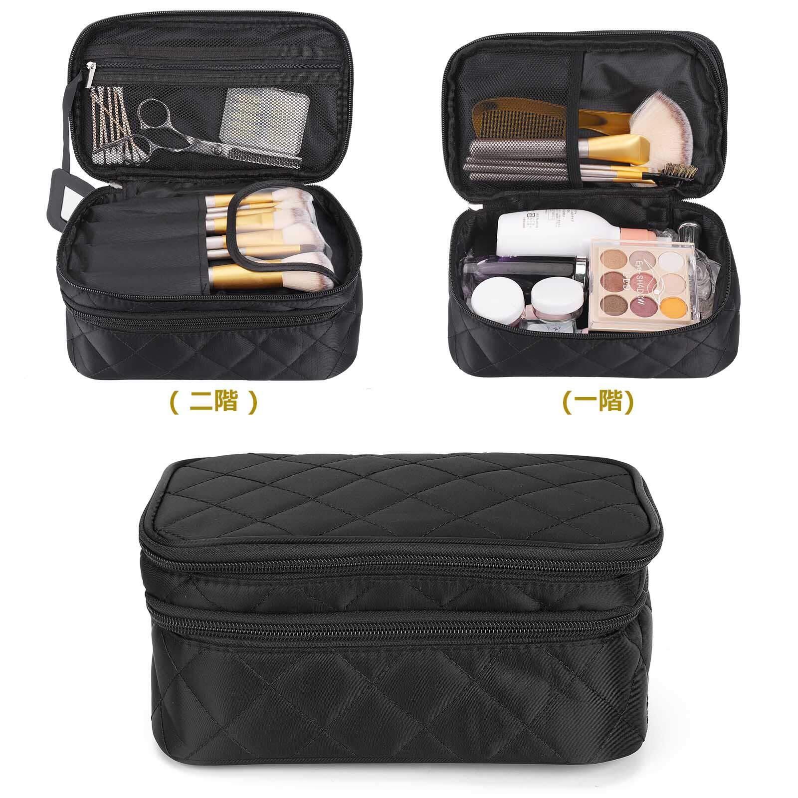 【大容量収納】: 二つの大きなポケットに分かれているダブルジッパータイプのメイクポーチ。1階:ファスナーポケット1個、メッシュポケット1個、高さ1.5cm 2階:ストレッチネット、空きフロア、5cm高さの小さなサイズ、7cm高さの大きなサイズ。化粧水、アクセサリー、メイクブラシホルダー、口紅、香水、ネイル用品などの小物収納にも便利です。旅行用化粧品だけでなく、ヘッドフォン、充電器、充電宝物などのような電子アクセサリーの収納にも。