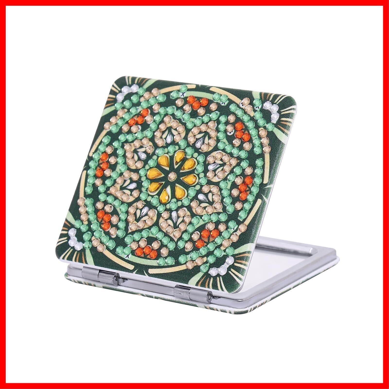 ダイヤモンドアート 手鏡 キット ダイアモンドアート セット 曼荼羅 折りたたみ化粧鏡 ミラーDIYダイヤモンドペインティング 5Dダイヤモンド塗装キット 手芸キット四角いビーズアート 初心者、大人、子供用 人気 手作りアートクラフト用品 (グリーン-かくがた鏡)